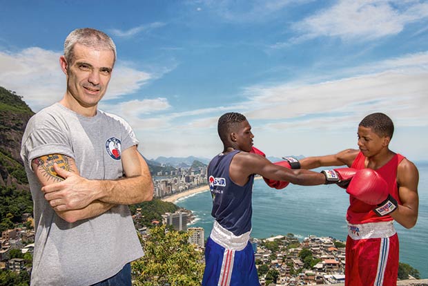 O instrutor de boxe Raff Giglio tem uma academia que fornece bolsa integral a jovens moradores do Vidigal