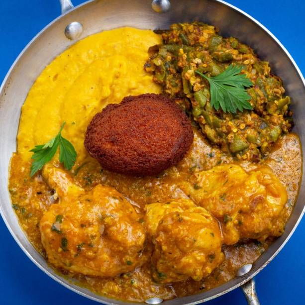 Antes de se fixar no Grajaú, o restaurante teve vida itinerante em feiras e eventos. No ponto fixo, entre paredes de cores vibrantes e decoração de temática africana, a chef e pesquisadora Dandara Batista recria pratos temperados com história. Às tradições brasileiras ela somou pesquisas realizadas pelo continente africano, compondo um cardápio rico em referências. O bolinho de bobó de camarão (R$ 23,00 a porção com três) e o ceviche de banana-da-terra (R$ 18,00) convidam a petiscar. Pratos surgidos a partir de lembranças de viagens imersivas da chef estão sinalizados no cardápio com a bandeira do país de origem, a exemplo do moçambicano caril de camarão com arroz de alho-poró (R$ 43,50), regado com leite de coco bem condimentado com gengibre, curry e pimenta. Na ala doce, o manjar (R$ 15,00) tem calda de manga e gengibre. Dos deuses.
