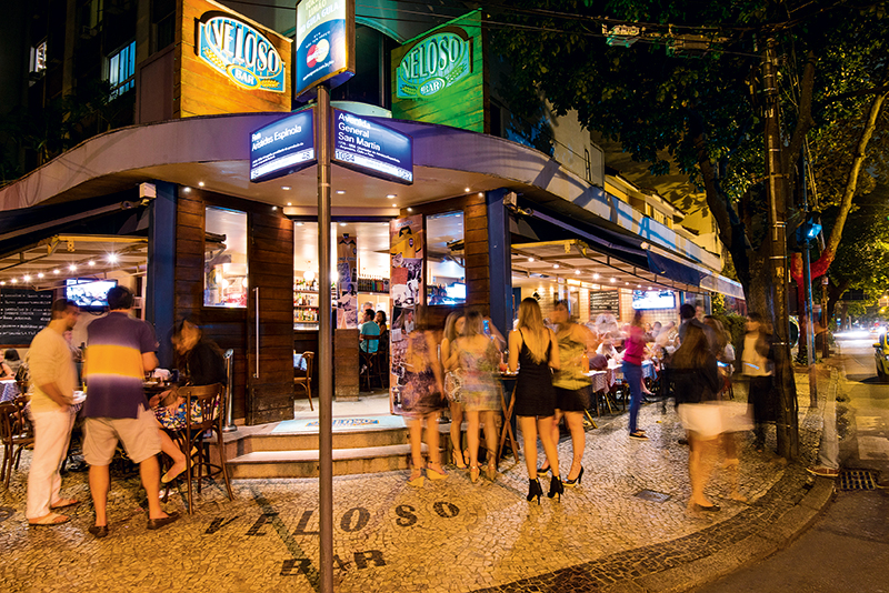 A esquina onde fica o endereço é concorrido point de azaração. Repaginada há cerca de dois anos, a casa ganhou tratamento acústico, novos banheiros e grafites nas paredes. Entre os reforços do cardápio, há pizzas, hambúrgueres e espetadas, como a de filé, acompanhada de farofa e molho à campanha (R$ 47,00). Os crostini, espécie de bruscheta, nos sabores parmesão e ragu de linguiça (R$ 27,00, seis fatias), também são boa pedida para acompanhar o chope Brahma (R$ 6,80 a tulipa) ou a cerveja Original (R$ 12,00, 600 mililitros). Servido em jarra de 1,5 litro, o clericot de espumante (R$ 89,00) reúne Cointreau, lima-da-pérsia, maçã verde e pêssego. Pelo ponto um tanto quanto estratégico, o lugar é procurado pela turma da praia, durante o dia, e ganha contornos de baixo noite adentro.