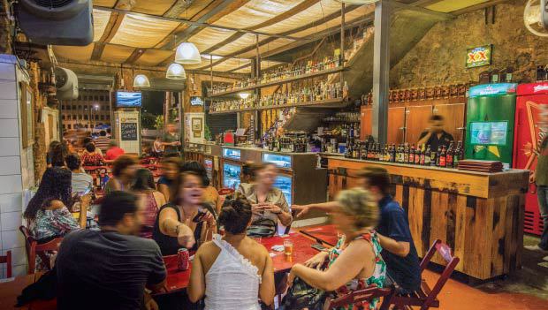 No endereço com longo histórico como boteco, um incêndio há alguns anos foi a deixa, junto com o processo de revitalização da Zona Portuária, para uma reforma modernizante. A vocação local, no entanto, foi mantida, assim como o espírito de outrora, representado pela parede de pedras aparentes. A cada quinze dias, nas sextas, a partir das 19h, uma roda de samba agita o 2º andar. O dia que antecede o fim de semana também é sinônimo de alegria para os fãs de pernil assado. Suculenta, a carne chega às mesas na porção (R$ 26,00) ou como recheio de sanduíche (R$ 16,00). Crocante por fora e de interior macio, o croquete gracioso (R$ 7,00) divide as atenções com o du calhau (R$ 7,00), um bolinho de aipim com bacalhau. Entre os sessenta rótulos de cachaça disponíveis, a prestigiada Canarinha (R$ 18,00 a dose) é pedida acertada, ao lado de representantes de Salinas, as mineiras Lua Cheia (R$ 12,00), Seleta e Boazinha (R$ 9,00 cada uma). Igualmente variada, a ala das cervejas oferece sugestões como a pilsen Paulistânia (R$ 12,00, 600 mililitros), além das artesanais Hija de Punta (R$ 26,00, 600 mililitros), uma lager, e Katia Flávia (R$ 30,00), IPA que celebra a louraça belzebu da música de Fausto Fawcett.
