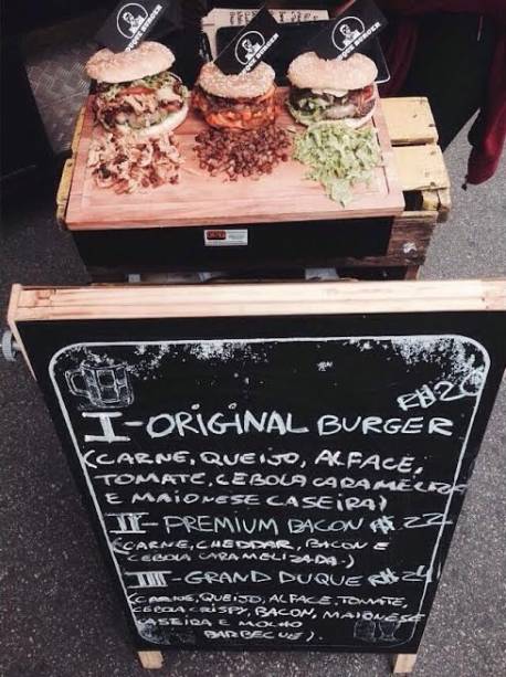 Duque Burguer: Hambúrguer Premium Bacon, Carne 180g, molho cheddar e cebola grelhada no shoyo, bacon e maionese da casa (R$ 22) – Original Burger, Carne 180 gramas, queijo, alface, tomate e cebola caramelizada (R$20) – Grand Duque, Carne 180 gramas, queijo, bacon, alface, tomate, cebola caramelizada, maionese da casa e molho barbecue (R$ 24).