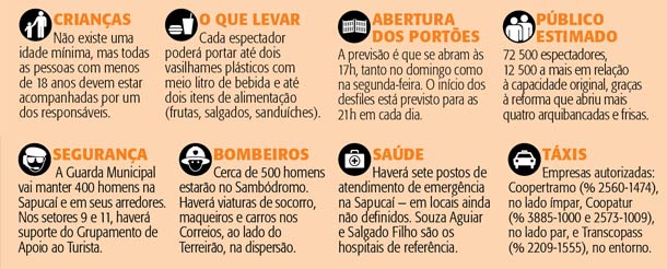 Dicas sobre como chegar e sair e outras informações importantes para quem vai ver os desfiles ao vivo