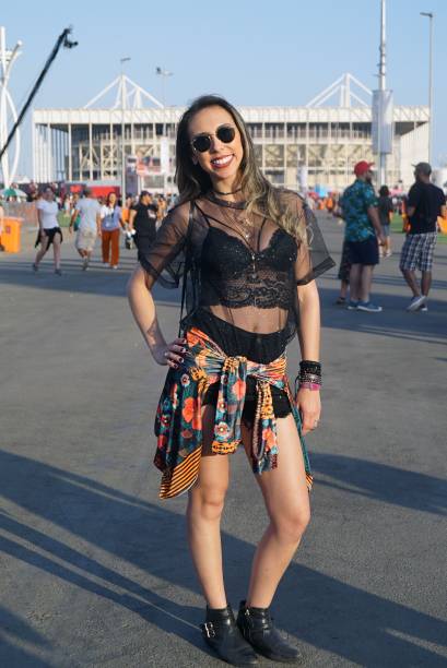 No segundo dia do Rock in Rio 2017, o rock serviu de inspiração para o look das meninas que desfilaram pela Cidade do Rock. Chapéus, transparências, meia-arrastão e jaquetas amarradas na cintura ditaram as produções, em sua maioria marcadas pela cor preta. Confira galeria de fotos: